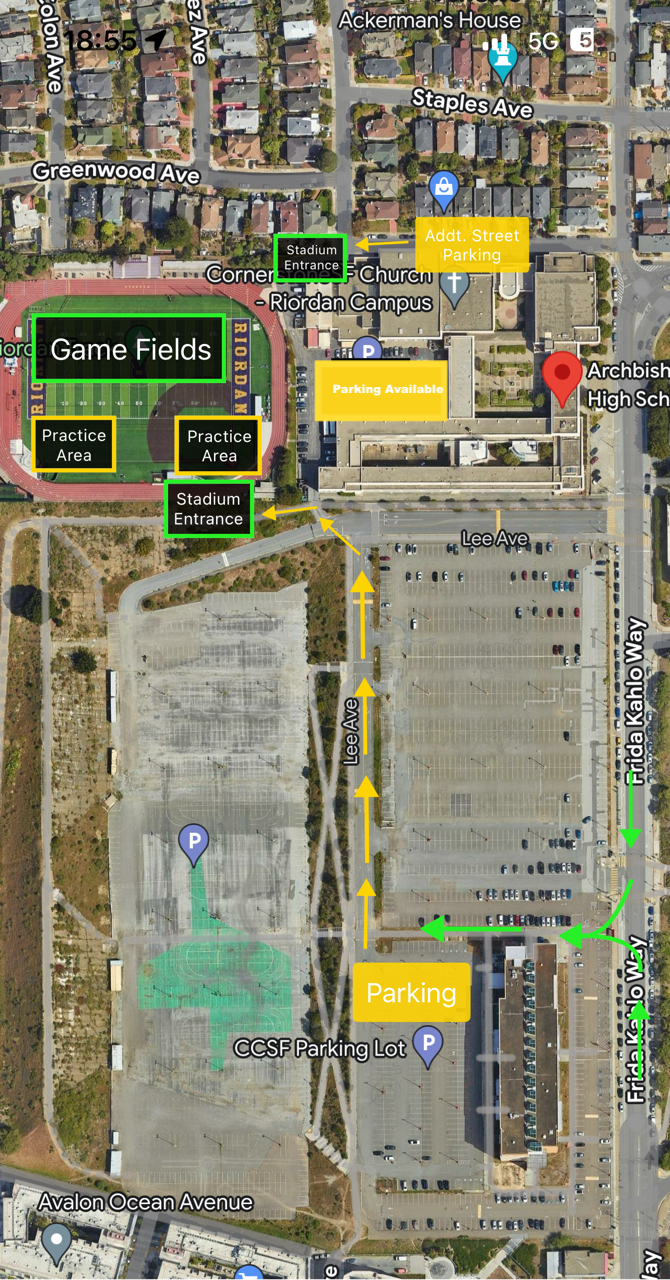 Arrival Point: Once you have found parking, the football field is located at the back of the campus. Please do not cut through the Riordan campus as it is reserved for a Sunday church program. Walk down Lee Ave. or Judson St. to enter through the gates onto the track where signs will direct you to the practice fields. We will have signs up to direct Next Level families on where to go.